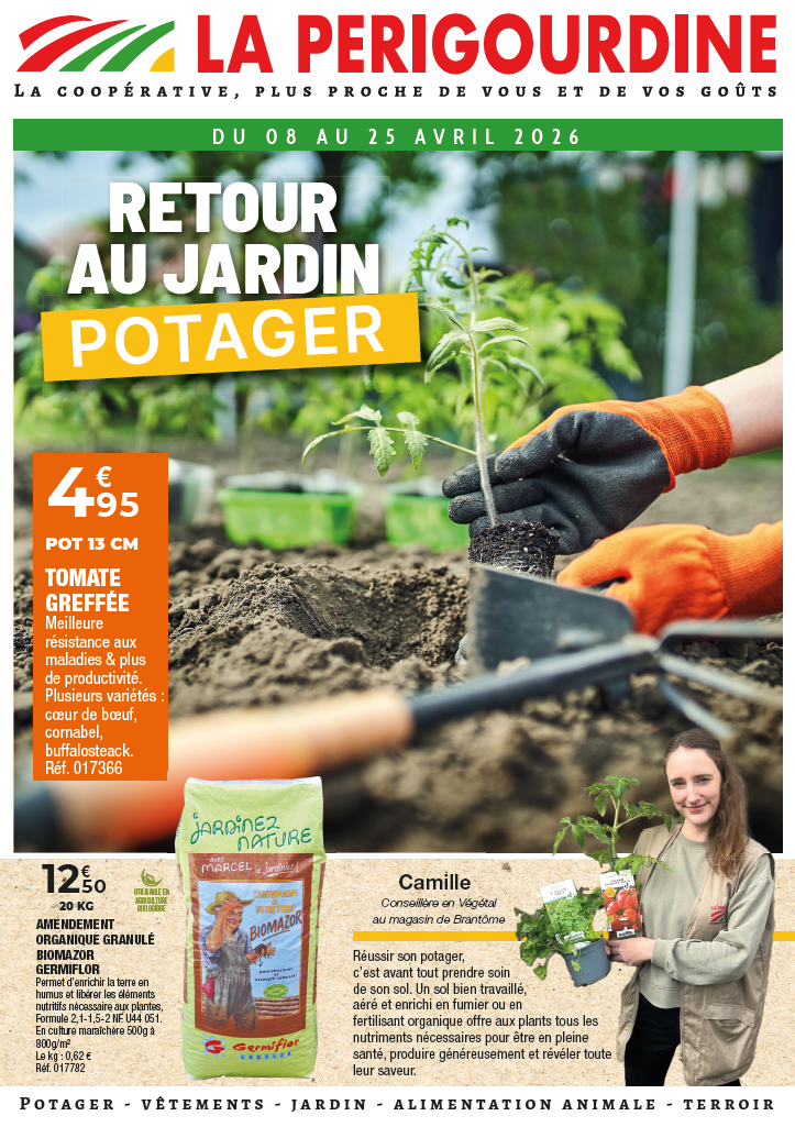Du 8 au 25 avril 2026, découvrez notre catalogue spécial potager rempli d’idées et de produits pour tous vos projets : potager, entretien du jardin, fleurs pour embellir vos extérieurs, sans oublier de quoi prendre soin des abeilles 🐝 et de vos compagnons à 4 pattes 🐾